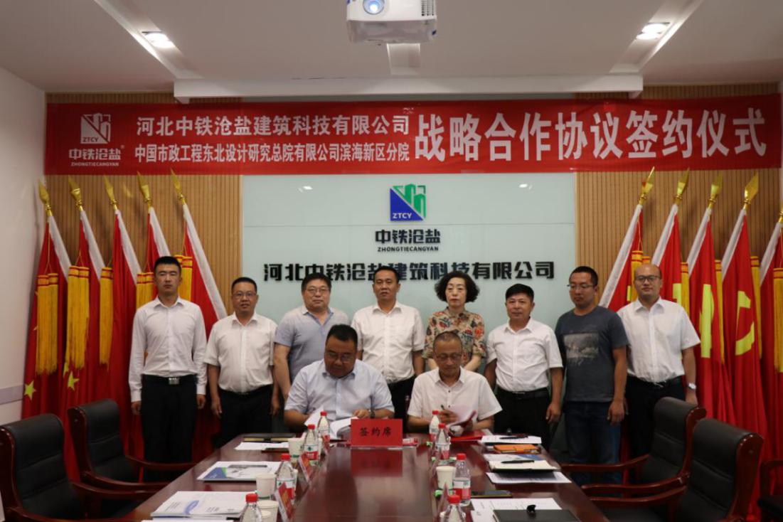 2020年7月9日,河北中鐵滄鹽建筑科技有限公司與中國市政工程東北設(shè)計(jì)研究總院有限公司濱海新區(qū)分院戰(zhàn)略合作簽約儀式成功舉行。此次活動(dòng)特別邀請了滄州鹽業(yè)集團(tuán)黨委書記、董事長劉建軍、工會(huì)主席李金營出席會(huì)議,中鐵滄鹽副董事長王峰偉,總經(jīng)理王志巖,東北設(shè)計(jì)研究院濱海分院院長紀(jì)云公,副院長孫洪艷等相關(guān)領(lǐng)導(dǎo)共同出席此次戰(zhàn)略合作簽約儀式。