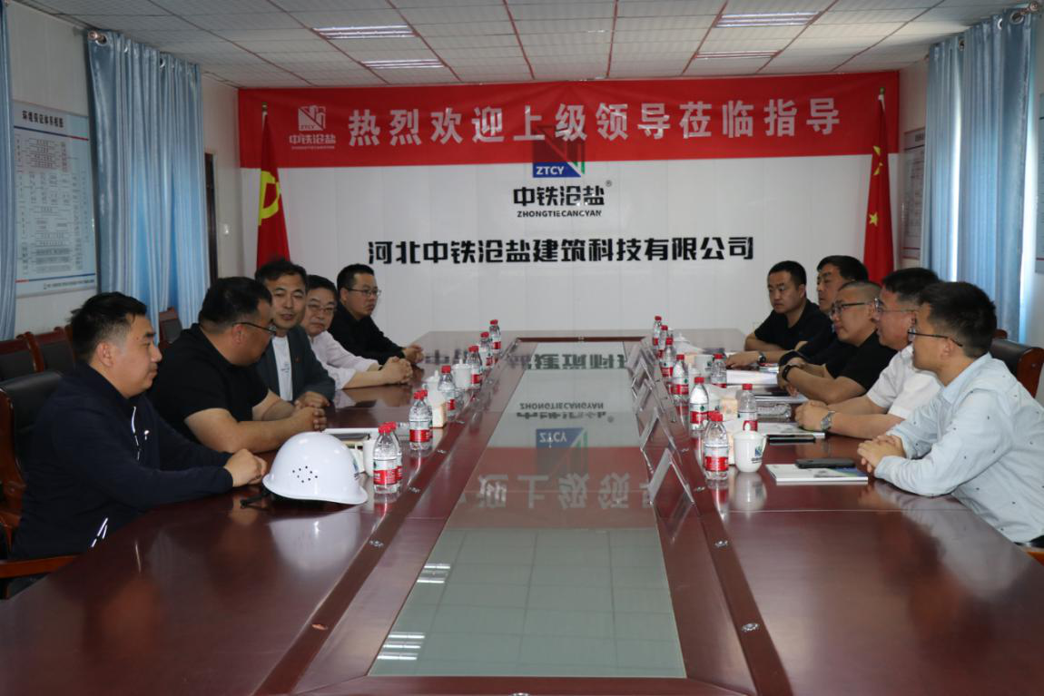參觀后彭丁輝、李正超一行在辦公區(qū)會議室與滄鹽集團(tuán)總經(jīng)理張立莊、工會主席李金營、中鐵滄鹽公司相關(guān)領(lǐng)導(dǎo)進(jìn)行了座談。座談會上,彭丁輝對中鐵滄鹽公司成立以來取得的顯著成績給予高度贊揚,表示本次參觀感受到了無懼困難、勇往直前的中鐵滄鹽速度,也為集團(tuán)公司在其他省份發(fā)展裝配式提供參考樣板,希望中鐵滄鹽今后再接再厲,不斷開拓市場,持續(xù)推動公司穩(wěn)步發(fā)展。